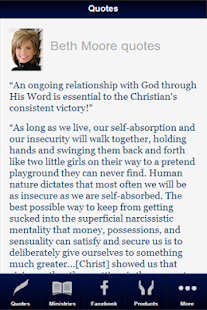 Foremost is Beth Moore, through whose ministry I learned the simplicity and the power of the Gospel and It is through this ministry that I realized the importance of staying in the Word of God daily as a way of life. ... Fetch Here